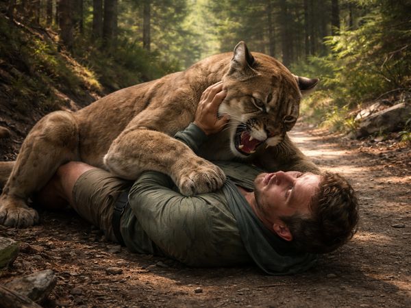 Puma zaútočila a chtěla se T.Kauffmanovi zakousnout do krku. Ten bojoval o život a pumu uškrtil.Včera