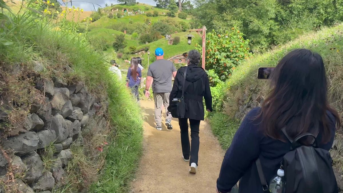 Na hotelu mě vyzvedl průvodce v 6:30 hodin ráno a během dvaceti minut jsme v širším centru Aucklandu vyzvedli ještě dalších 7 lidí. Následně jsme vyrazili směrem na jih. Průvodce byl skvělý, celou cestu s námi komunikoval a seznamoval nás se zajímavostmi regionu, kterým jsme projížděli. Cestou jsme zastavili v kavárně, kde jsme dostali kávu a kousek pečiva dle našeho výběru. Do Hobitína jsme dorazili v 9:15 hodin a obdrželi jsme vstupenky. Prohlídka Hobitína začíná na místě zvaném The Shire's Rest. Zde se nachází obchod se suvenýry, kavárna, WC, parkoviště a prodejna vstupenek. Odtud odjíždí autobusy směrem k filmovým kulisám, kdy cesta zabere přibližně 10 minut, během které projíždíte Alexandrovou farmou až k samotnému vstupu do Hobitína.