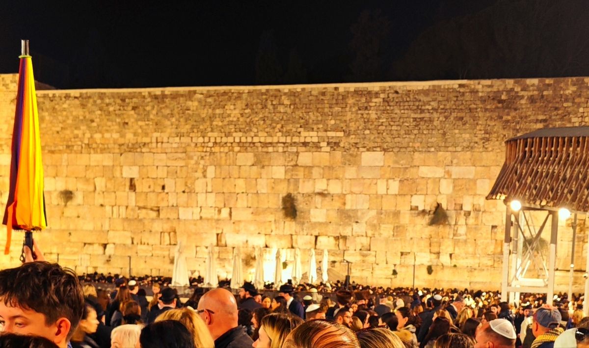 A teď už ji vidím. Venku je už tma, když vyjdu z tunelu. Zeď nářků září v reflektorech, krásně osvětlená proti černému nebi. Plocha před ní je téměř plná, všude plno lidí, elektrizující atmosféra mě okamžitě zachvátí jako proud. Lidé poskakují a tančí v kruzích, drží se za ramena, točí se dokola. A teď tady stojím a snažím se vstřebat tu nepopsatelně úžasnou atmosféru.