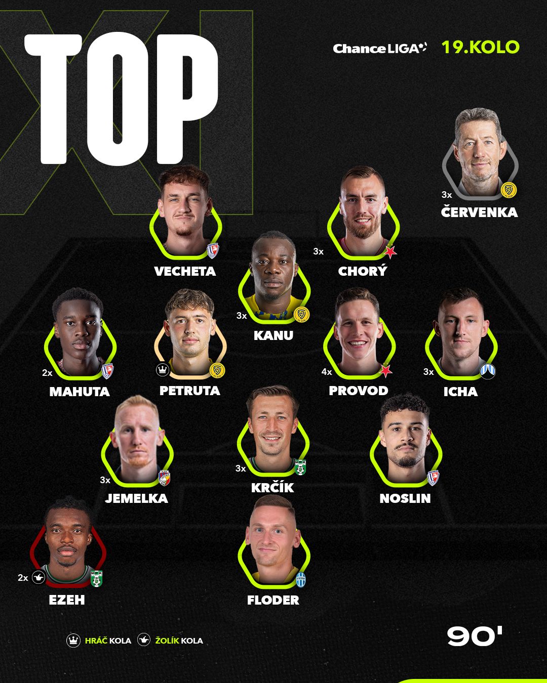 Stálicí defenzivních výběrů se stal stoper Karviné Dávid Krčík. Slovenský matador, který je spojován s přestupem právě do Viktorie Plzeň, sehrál důležitou roli ve výročním zápase pražských Bohemians. Klokani v oslavném zápase padli na domácí půdě proti Karviné 0:3 a pevnost defenzivy potvrzoval právě kapitán hostujícího celku. Přesné dlouhé přihrávky a úspěšnost v soubojích z něj dělají krále defenzivy.