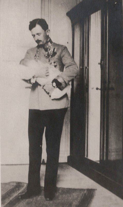 Císař Karel I. držící v náručí jedno ze svých dětí.