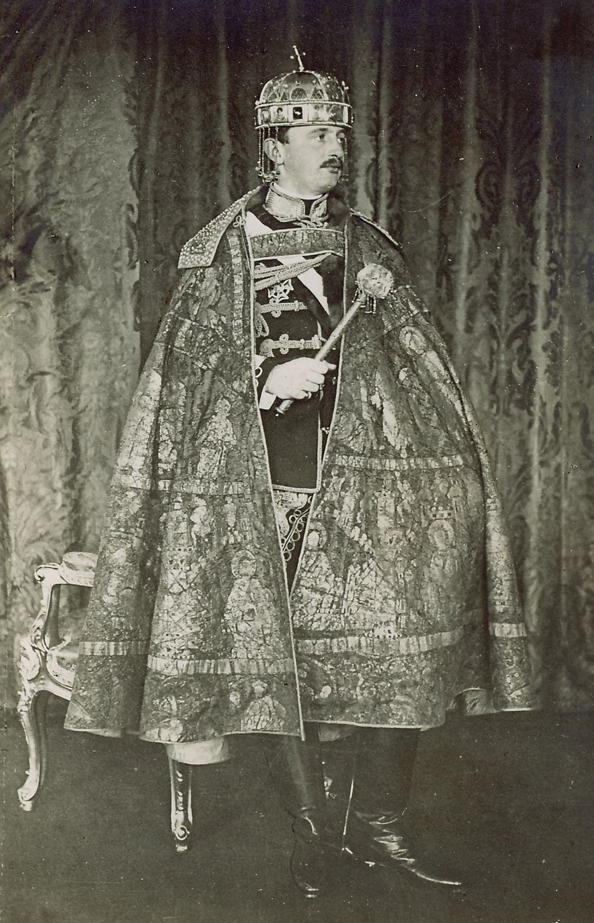 Císař Karel I. při korunovaci v Maďarsku v roce 1916.