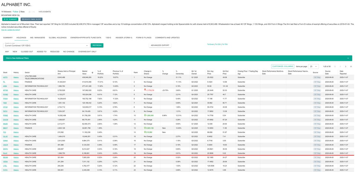 Když už mluvíme o Dr. Yeshwantovi, je tu jeden málo známý fakt: Google jen nepřihlíží z postranní čáry. Alphabet (skrze GV) firmu podporuje od prvního dne a stále drží (k Q3 2025) významnou pozici ve výši 1 568 753 akcií. Jde o tichý, ale silný hlas důvěry v AI schopnosti Relay.