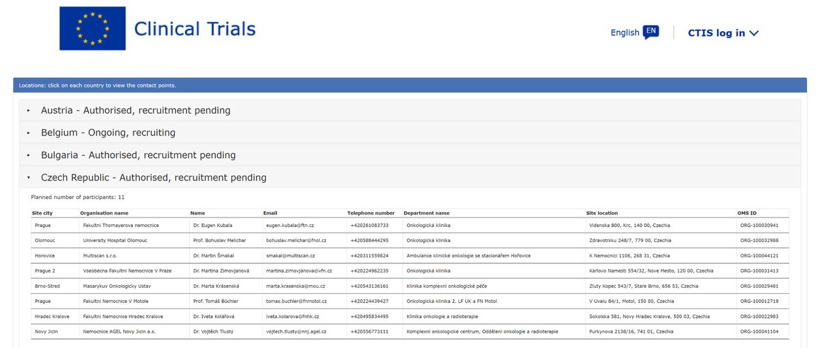 Veřejně dostupná data Evropské agentury pro léčivé přípravky (EMA). Zdroj: euclinicaltrials.eu