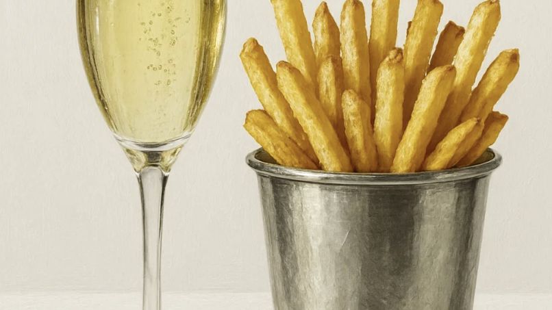 Spojení hranolek a šampanského může znít neobvykle, ale právě ono představuje typickou ukázku moderního konzumního života: chutné, lákavé, ale nezdravé kombinace, které nám dávají okamžitou radost, ale často na úkor těla. Tento kontrast mezi jednoduchou rychlou svačinou a slavnostním nápojem zároveň odráží naše vztahy k jídlu – někdy jíme z pohodlí, jindy z prestiže či tradice, a přitom málokdy přemýšlíme o dlouhodobých dopadech.