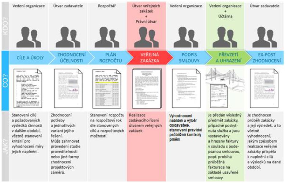 Metodika veřejného nakupování (2024) uvádí, že jejím cílem je: „poukázat na komplexnost veřejného nákupu, který není jen o dodržení procesního postupu dle zákona č. 134/2016 Sb., o zadávání veřejných zakázek, ve znění pozdějších předpisů (dále také „ZZVZ“), ale zahrnuje i celou řadu dalších činností realizovaných před i po samotném zadávacím procesu.“ (Obrázek 1.)