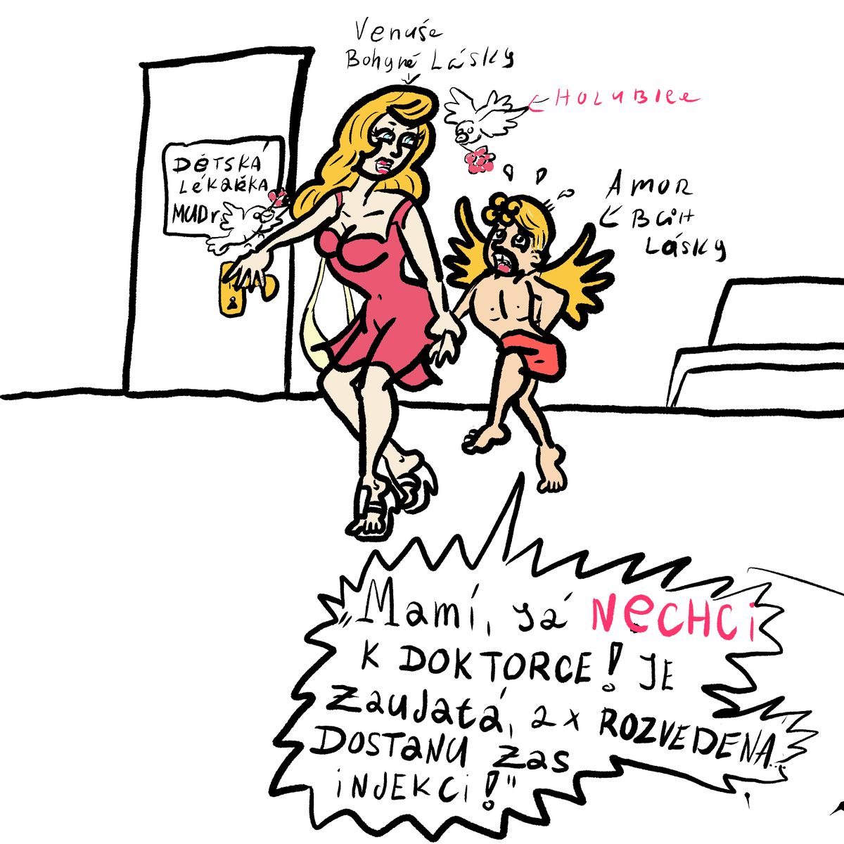 „Mamí, já nechci k doktorce! Je zaujatá, 2× rozvedená, dá mi zase injekci!“