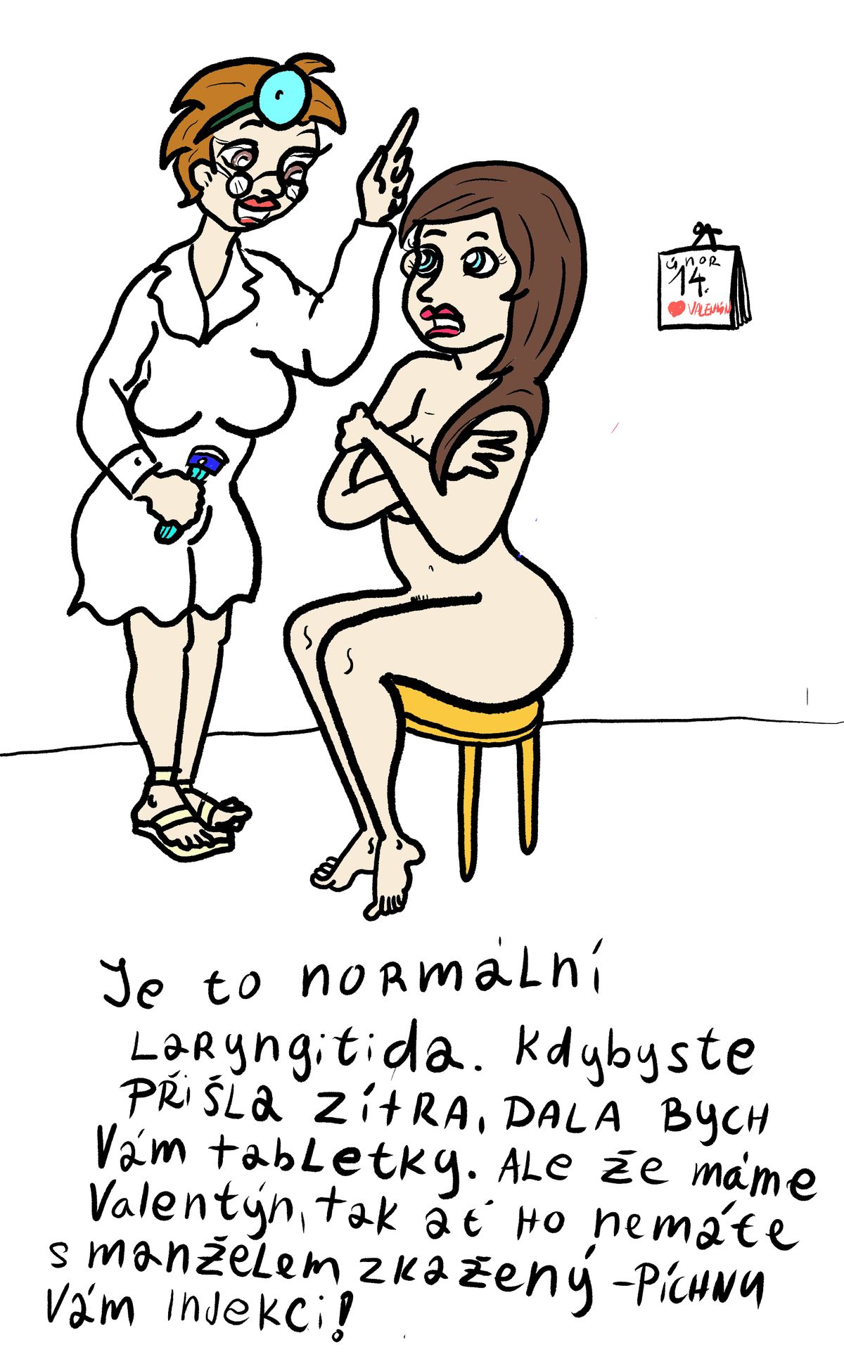 „Je to normální laryngitida.Kdybyste přišla zítra,dala bych Vám tabletku,ale že je Valentýn,tak abyste ho neměla s manželem zkažený,píchnu vám injekci!“