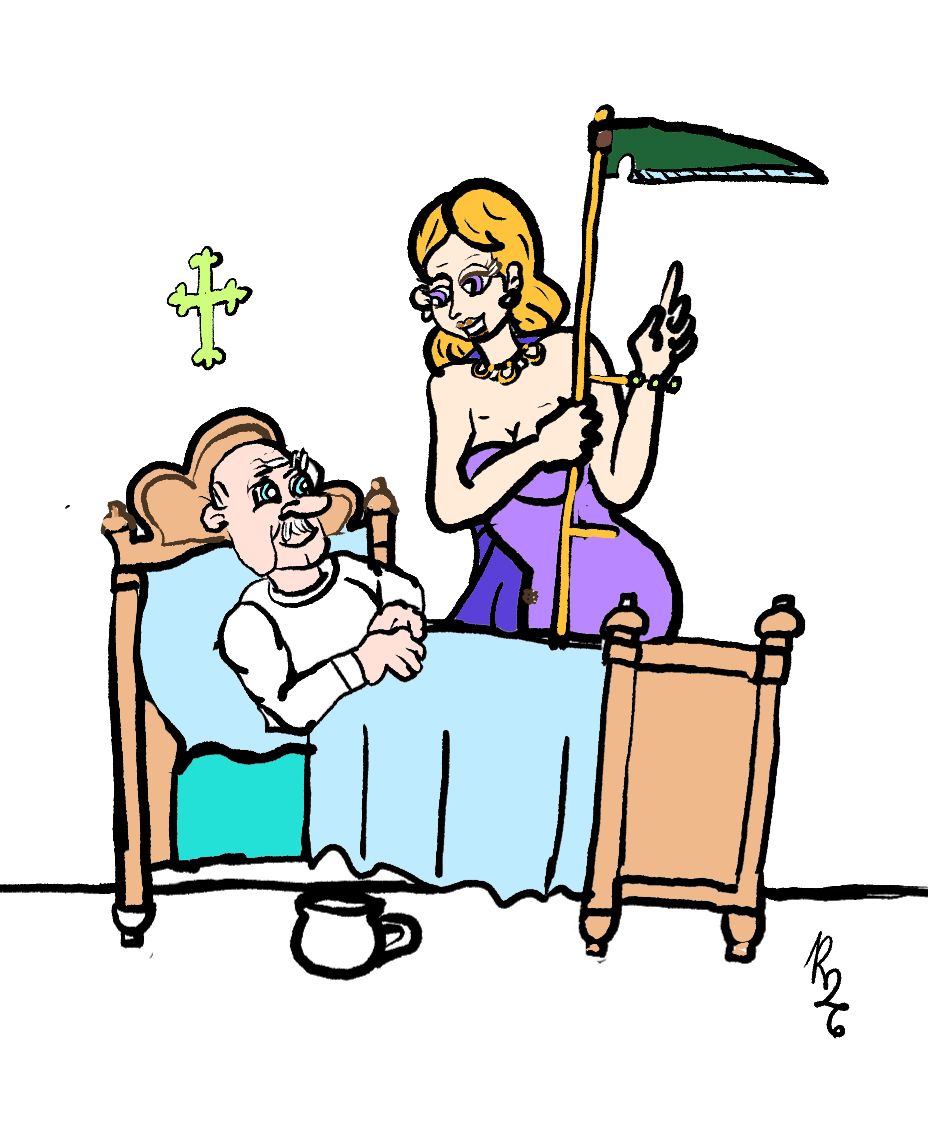 „Celý život jste se modlil za krásnou barokní smrt pane. Tak jsem se na to naše dnešní rande vous patřičně nastrojila, abyste byl spokojen!“