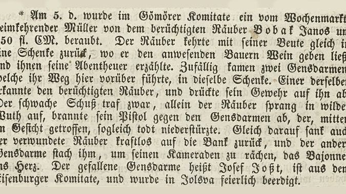 Dne 5. listopadu 1850 padl při výkonu služby muž, jehož jméno dnes zná málokdo – Josef Josst. Byl to právě on, kdo se stal prvním četníkem na území dnešního Československa, který položil život při zásahu proti ozbrojenému zločinci.