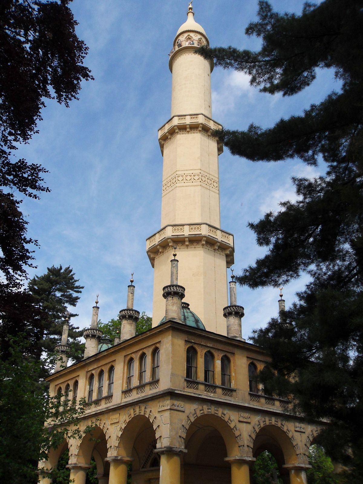 Zámecký park, orientální minaret i točité schodiště