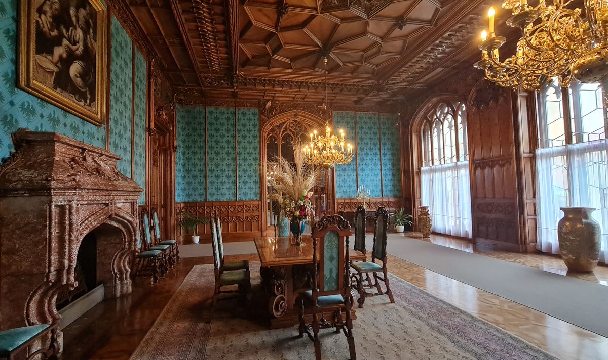 Interiéry zámku jsou skutečně nádherné, specifické a hodně známé jsou i tapety na stěnách