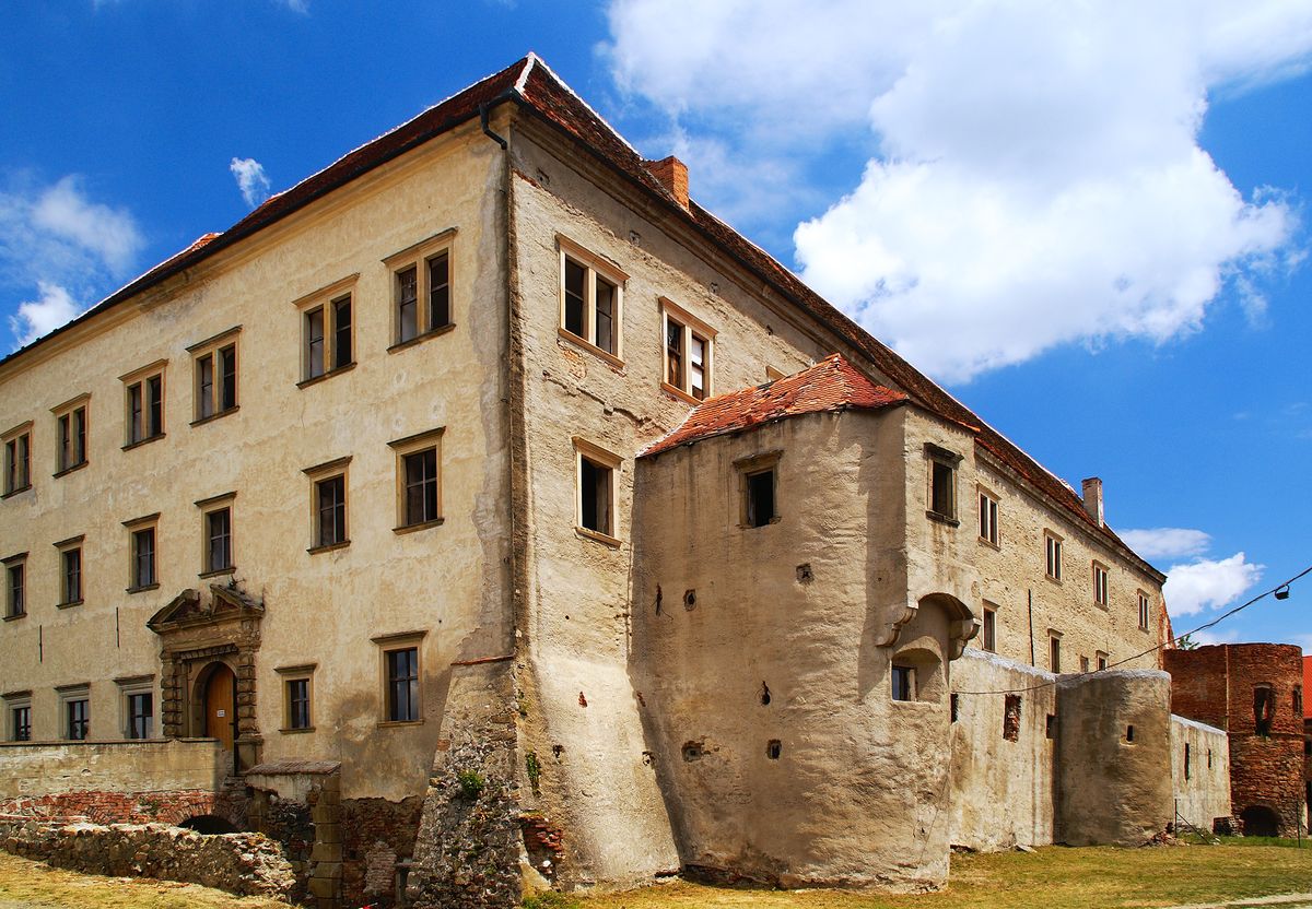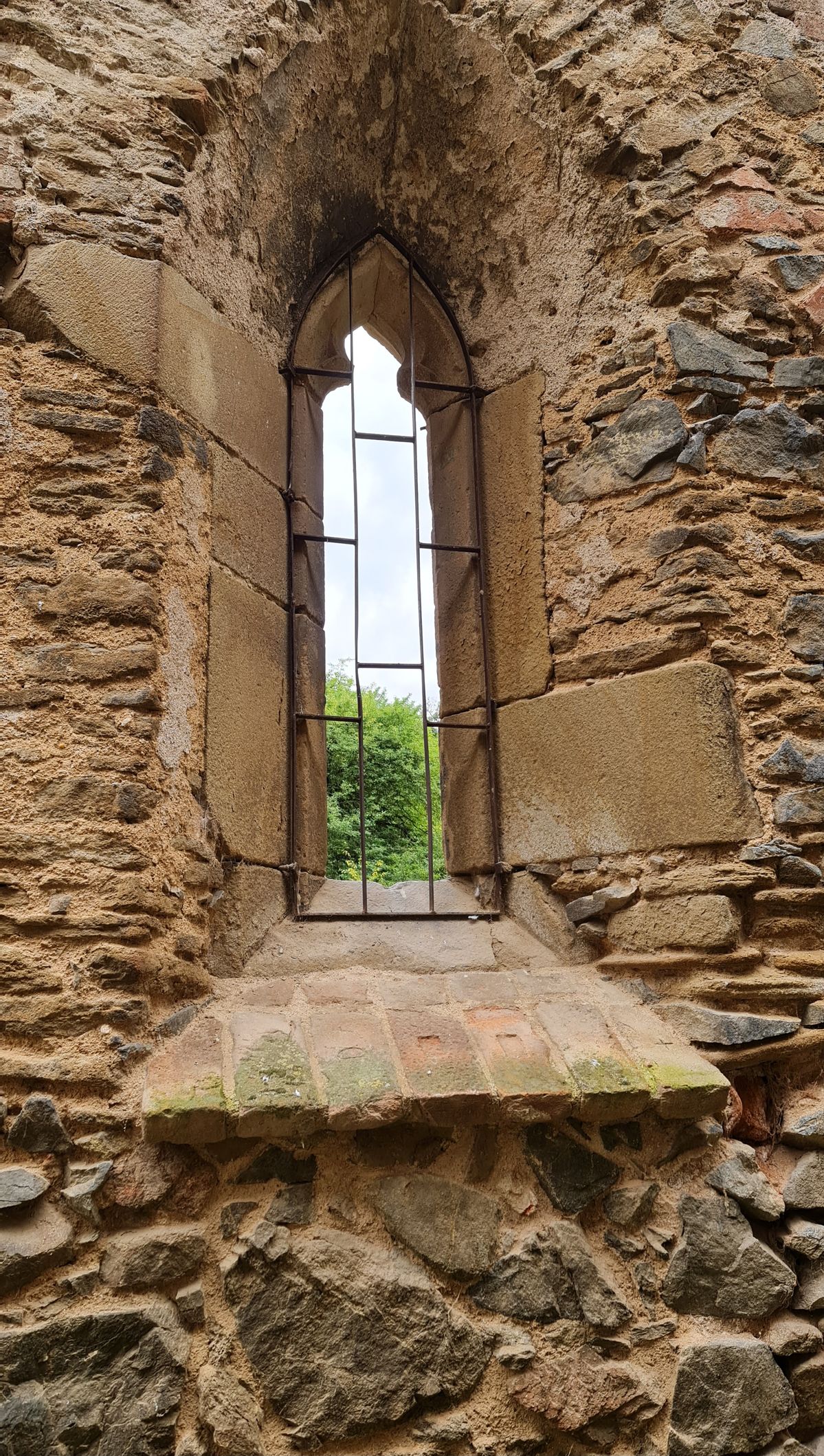Gotické zdi kláštera, oknem můžete vidět část zámku