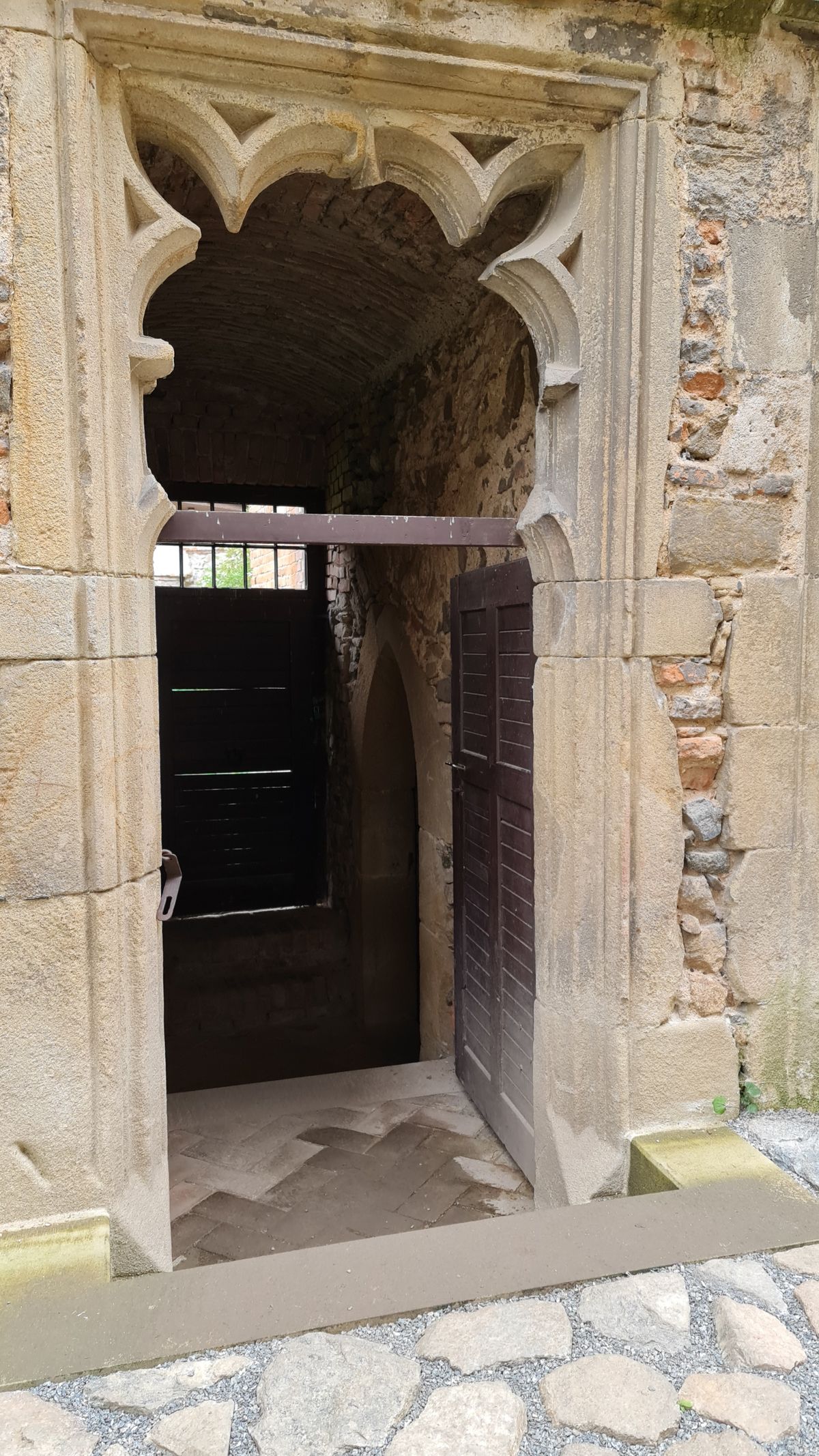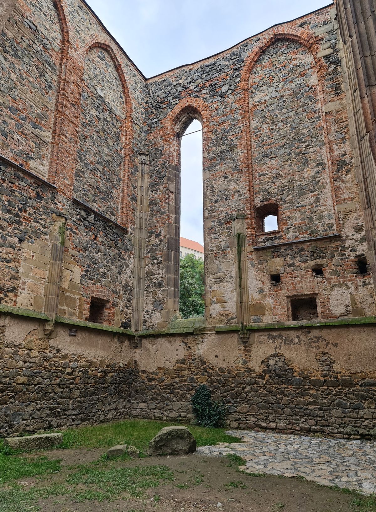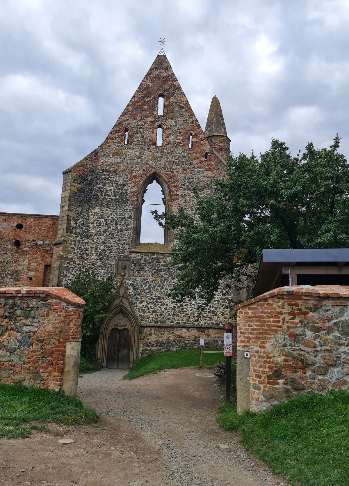 Prověřovali a hledali jsme samozřejmě nejdříve parkoviště, protože ten náš obývák s ložnicí a kuchyní na kolech se všude nevejde. A objevili jsme veřejné parkování na místě nazvaném Mlýnské náměstí, a to dokonce zcela zdarma. Zamířili jsme tedy na „náměstí“, které bylo jakousi udusanou volnou plochou mezi domky, z nichž některé byly upravené a jiné působily jako staré strašidelné skladiště. To mě překvapilo, překvapilo o to víc, že v podstatě za rohem se nacházela úžasná památka z 12. století.