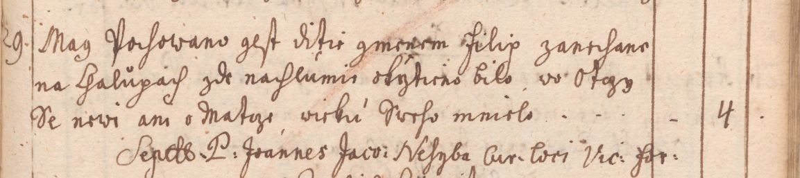 Tak v matrice středočeské chlumské farnosti roku 1752 zapsal tamní farář Jan Jakub Nesyba tuto událost: