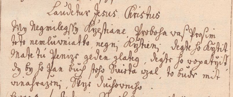 Vy nejmilejší křesťané, proboha vás prosím toto nemluvňátko není křtěný, dejte ho křtít. Máte tu peníze jeden zlatej, dejte ho vopatřit, kdyby ho Pán Bůh z toho světa vzal, to bude mít vynahražení, skrze duchovního.