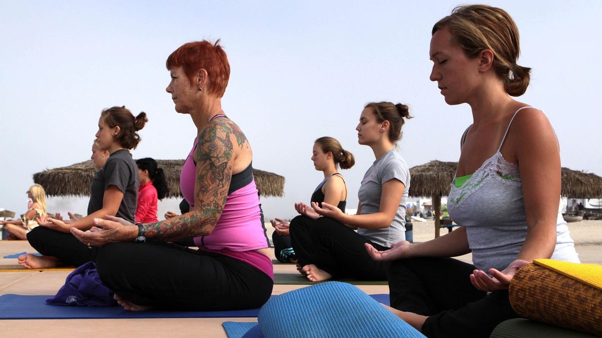 Když jsem dorazila do sálu, první, čeho jsem si všimla, byl pach levandule a éterických olejů. Druhá věc? Lidé, kteří tam evidentně nebyli poprvé. Obzvlášť žena vpředu, štíhlá, elegantní, se sebevědomím člověka, který ví, že jeho tělo zvládne pozici, při níž by mě museli navštívit záchranáři.