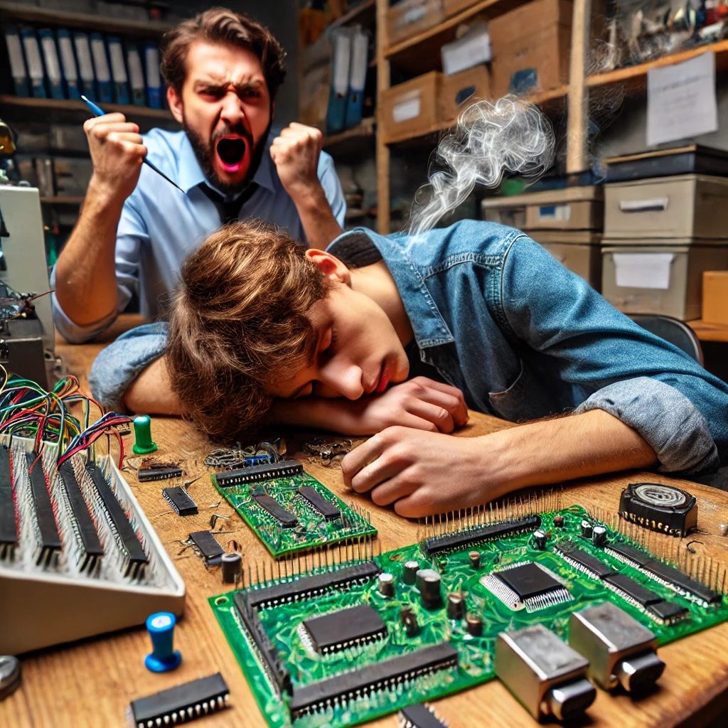 Po škole jsem býval unavený, a tak mi občas při předstíraném hledání závady mrtvého kusu klesla hlava a já funěl do opravované desky. Jaké bylo moje překvapení, když jsem se probral a deska fungovala. Koukal jsem okolo, jestli mi tu desku někdo nevyměnil. Předháněli jsme se v tom, kdo komu co provede.