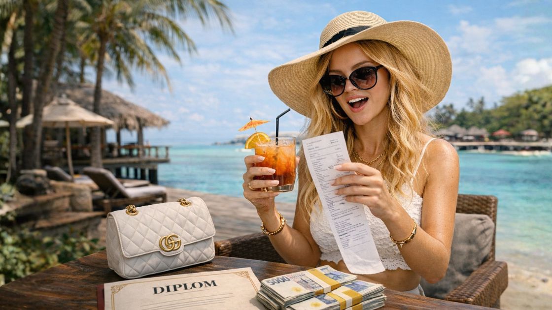Peníze, které měly pokrýt školné, pomůcky, notebook a bydlení, se rozkutálely rychleji než sleva na e-shopu. Po osmi měsících nebylo nic. Tedy kromě stovek stories z wellness víkendů, plážových resortů a veganských brunchů s popiskem: „Tvořím si realitu, jakou si zasloužím.“