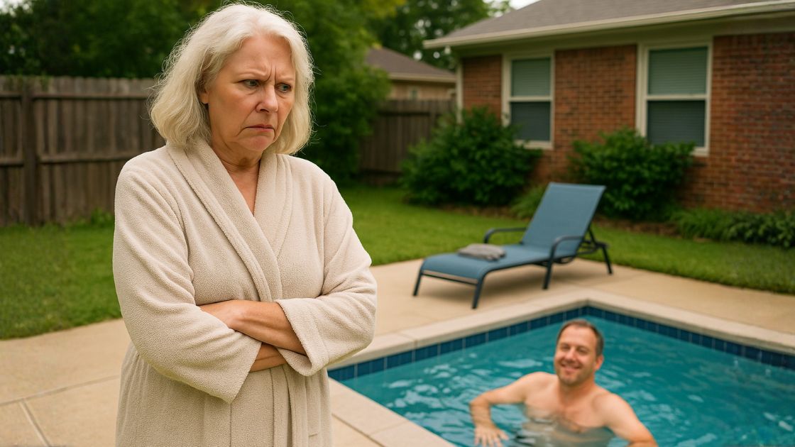 Bylo vedro, kafe v ruce, šla jsem se jen podívat k bazénu. Voda se vlnila nějak moc. Z vody se vynořila hlava – sousedova. Ležel na našem lehátku přes schůdky, ručník na okraji, spokojený jak lázeňský host.