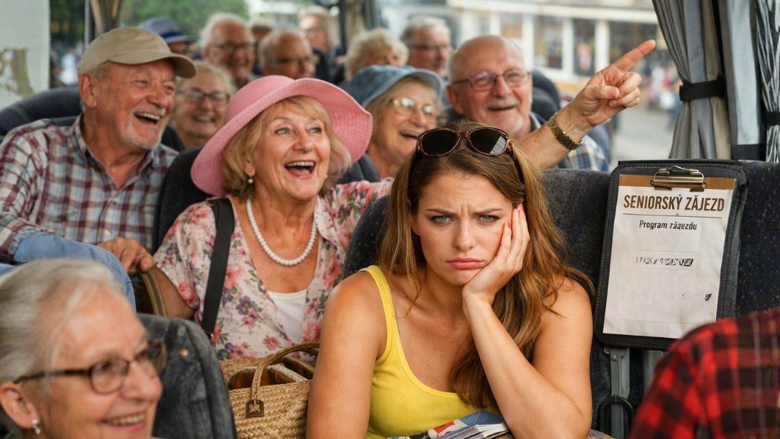 Přišla jsem na sraz s kufrem a letními šaty. Místo letiště mě čekalo autobusové nádražní stání č. 9 a fronta lidí s holí, bederními pásy a taškami, na kterých byly vyšité výjevy z Krkonoš. První varování jsem ignorovala. Druhé přišlo, když mi průvodce položil ruku na rameno a řekl: „Neboj, slečno, my máme i mladší ošetřovatelky.“