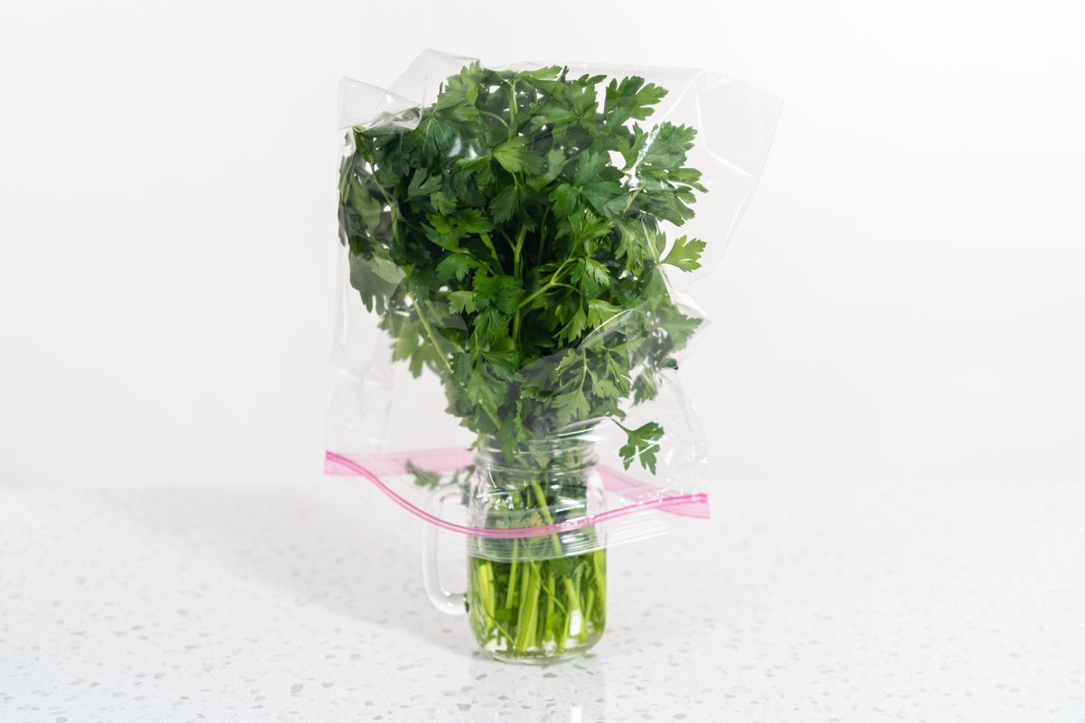 Od té doby je dávám do obyčejné sklenice s vodou téměř vždy. Stačí odříznout spodní část stonků, postavit je do vody a někdy přes ně lehce přehodit sáček, aby nevysychaly. Sklenici nechávám buď na lince, nebo ji dávám do lednice, podle druhu bylinky. Najednou vydrží čerstvé mnohem déle, často klidně celý týden nebo i víc.