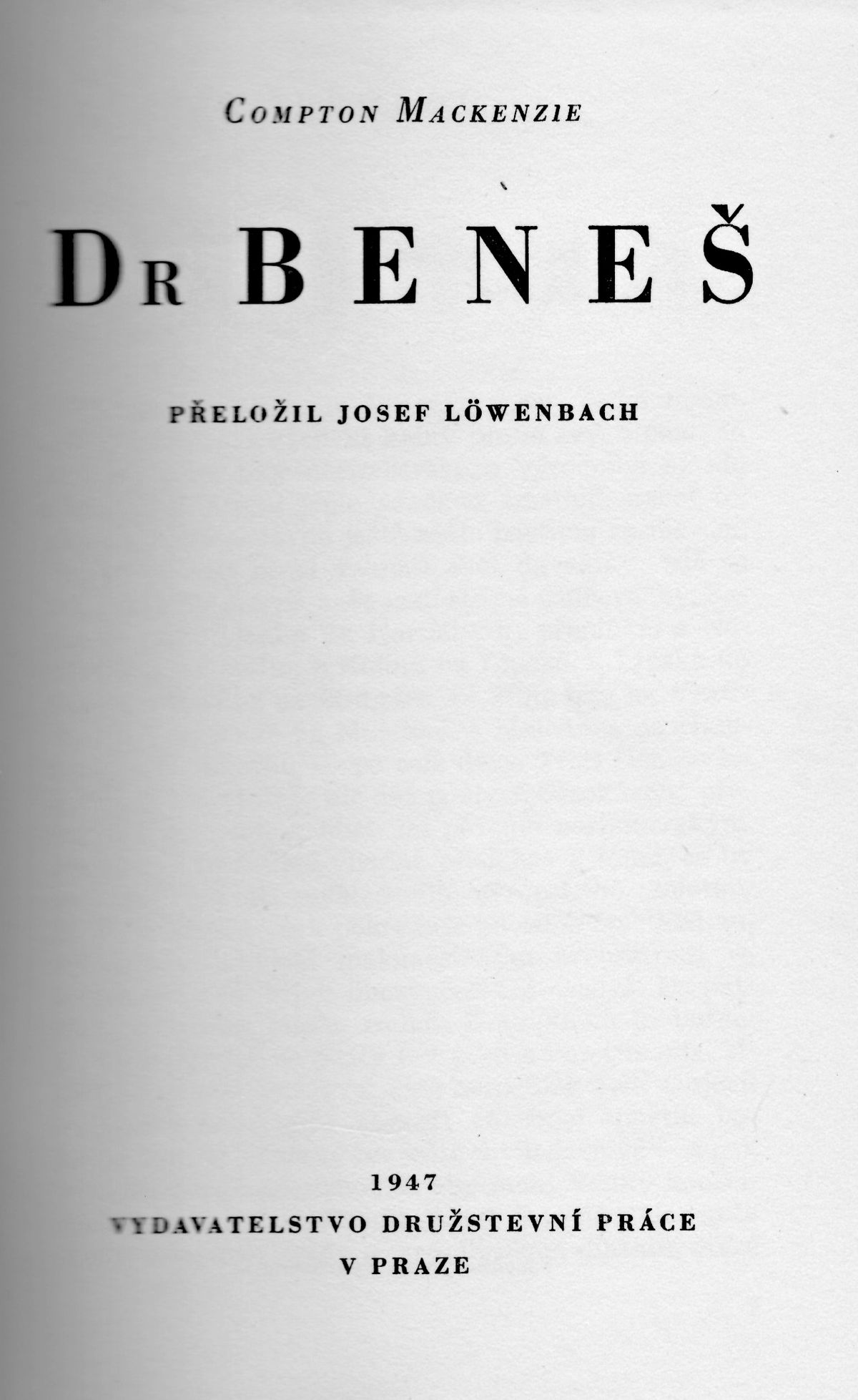 Compton Mackenzie - Dr. Beneš, vnitřní titulka knihy