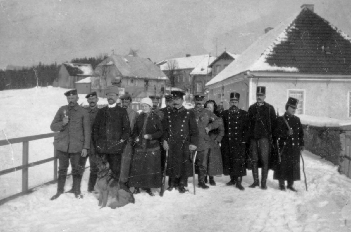 Česká Švarcava - celnice, společné foto německých a rakousko-uherských (českých) celníků1912
