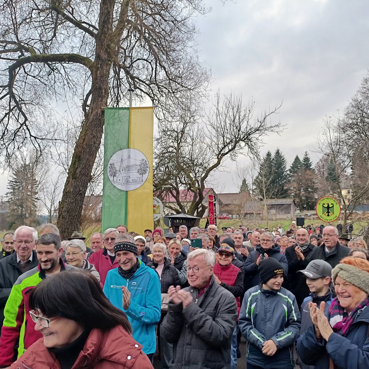 35. výročí otevření hraničního přechodu ve Švarcavě. Společná česko-německá vzpomínková oslava. Přes hranici na mostě dnes vede luxusní asfaltka.