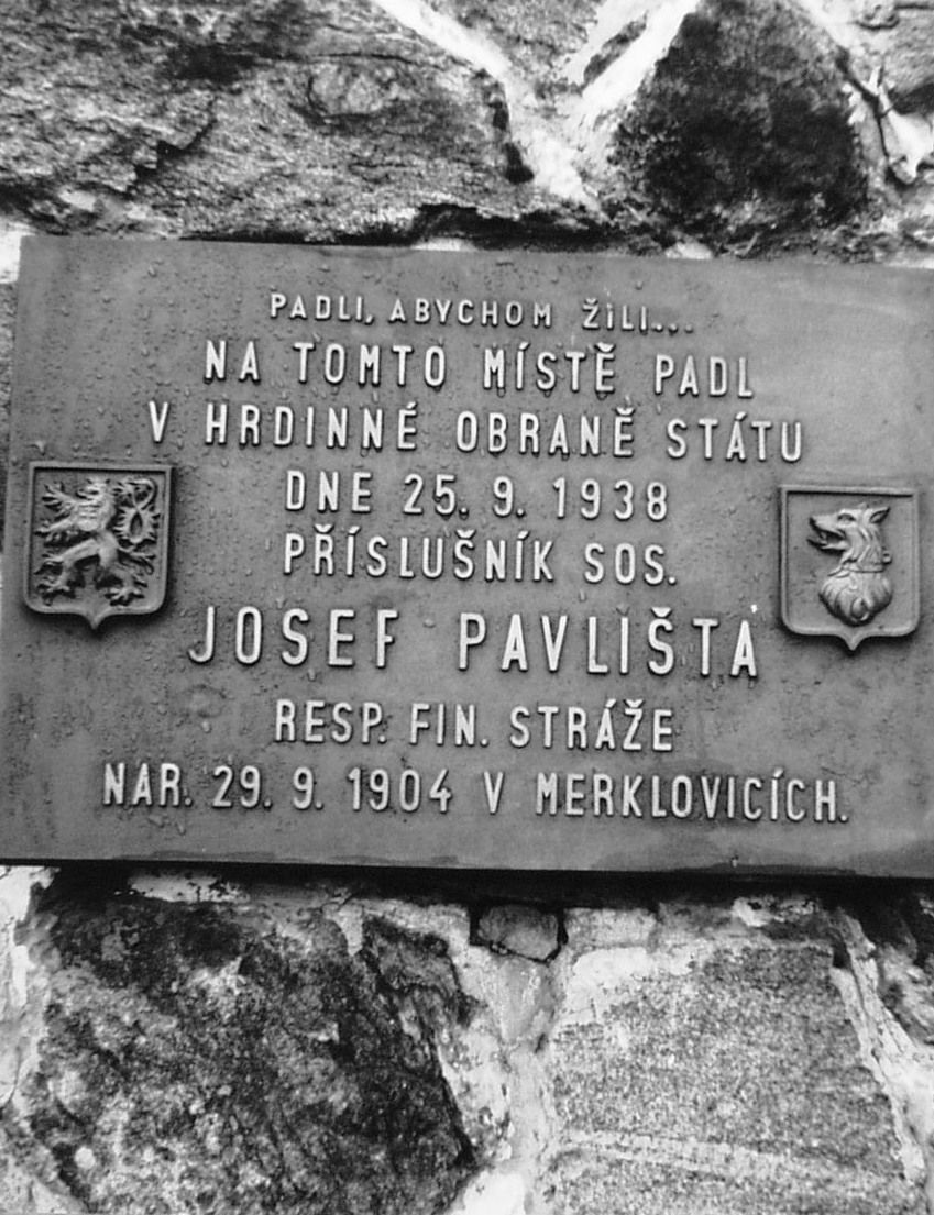 Pamětní deska příslušníka Finanční stráže a člena SOS Josefa Pavlišty, Čerchov