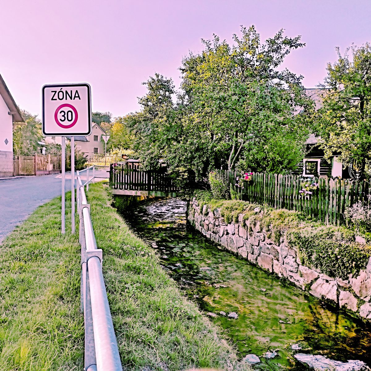 Dnešní obec Postřekov, okr. Domažlice, dříve dvě samostatné obce oddělené potokem - vlevo sudetoněmecký Mlinz/Mlýnec, vpravo český Starý Postřekov