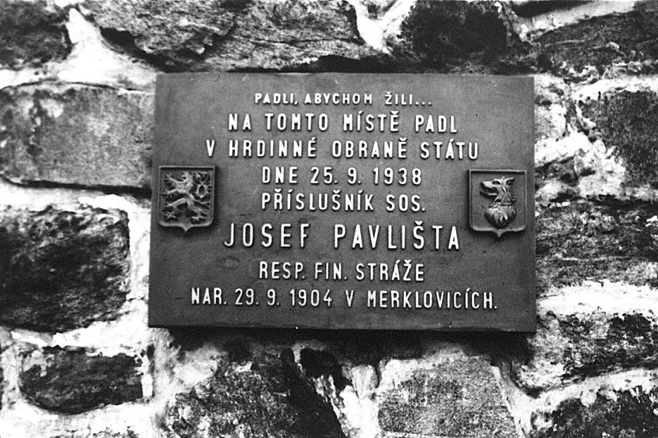 Pamětní deska na Čerchově ordnery zastřeleného respicienta Finanční stráže a příslušníka SOS Josefa Pavlišty