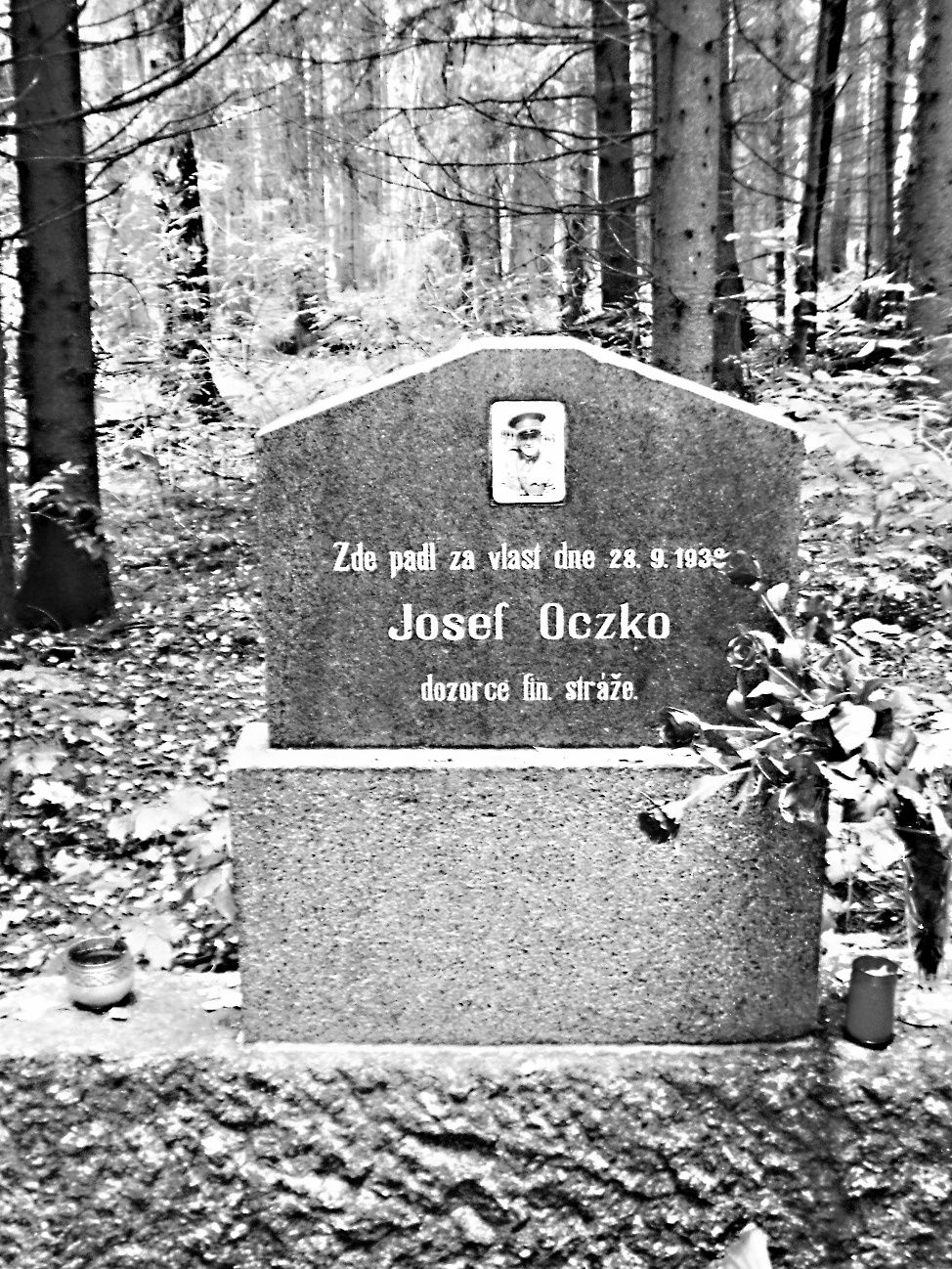 Památník ve Švarcavě ordnery zavražděného dozorce Finanční stráže a příslušníka SOS Josefa Oczka