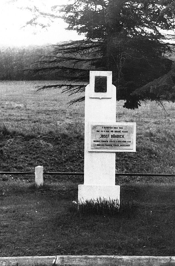 Památník v Lískové ordnery zavražděného dozorce Finanční stráže a příslušníka SOS Josefa Röhricha