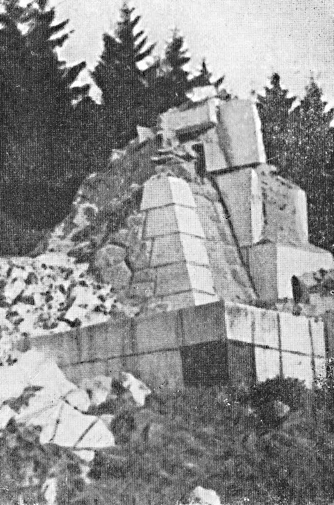 Trosky pylónu pomníku J.Š.Baara na „Výhledech“ nad Klenčím pod Čerchovem zničené henleinovci ihned po záboru pohraničí