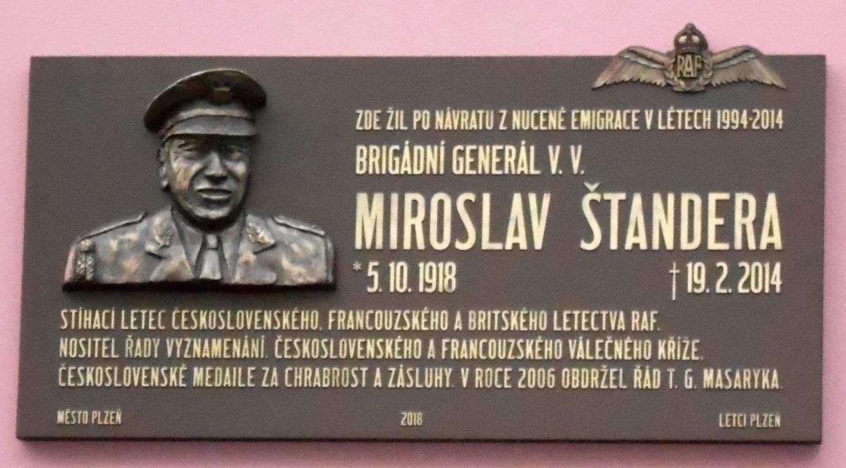 Pamětní deska brigádnímu generálovi Miroslavu Štanderovi instalovaná v Plzni