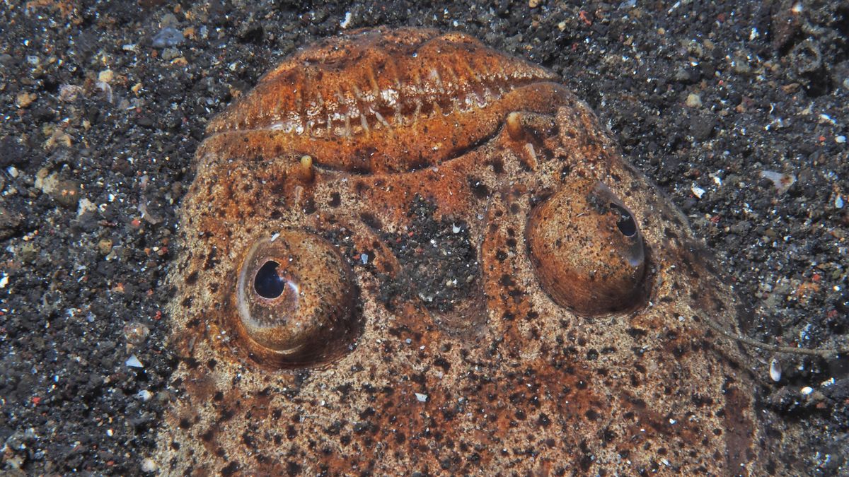K tomu, aby se ukrýval, je opravdu špičkově vybavený. Na rozdíl od jiných ryb nedýchá tak, že vodu posílá do žaber skrze ústa, ale má k tomuto účelu vyvinutý nos, který je navíc opatřen jakýmisi řasami bránícími nasávání písku. A aby toho nebylo málo, má v ústech podivný výrůstek, který vypadá jako mořská rostlina nebo červ. Tento výrůstek může před sebe vystrčit jako lákadlo pro ostatní ryby. Jak je loví?