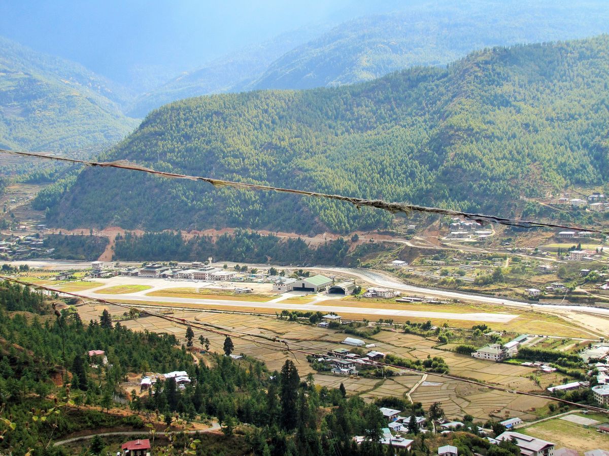 Není těžké odhadnout proč je přistávání v Bhútánu tak náročné. Letiště Paro leží v údolí obklopeném několika pětitisícovkami, kterým se prohání ostrý vítr. Turisty, kterých do Bhútánu přijíždí mimochodem čím dál tím více, může na letiště Paro dopravovat pouze padesát speciálně vyškolených pilotů. Přistání je pouze za dne a za podmínek, které umožňují vizuální orientaci. Tohle dobrodružství za to ale stojí, pokud budete mít v letadle na té správné straně, budete se moci při přistání pokochat nádherným výhledem na samotný Mount Everest.