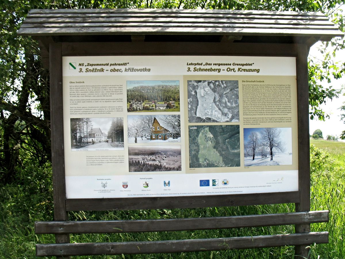 Informační tabule na trase naučné stezky Zapomenuté pohraničí.