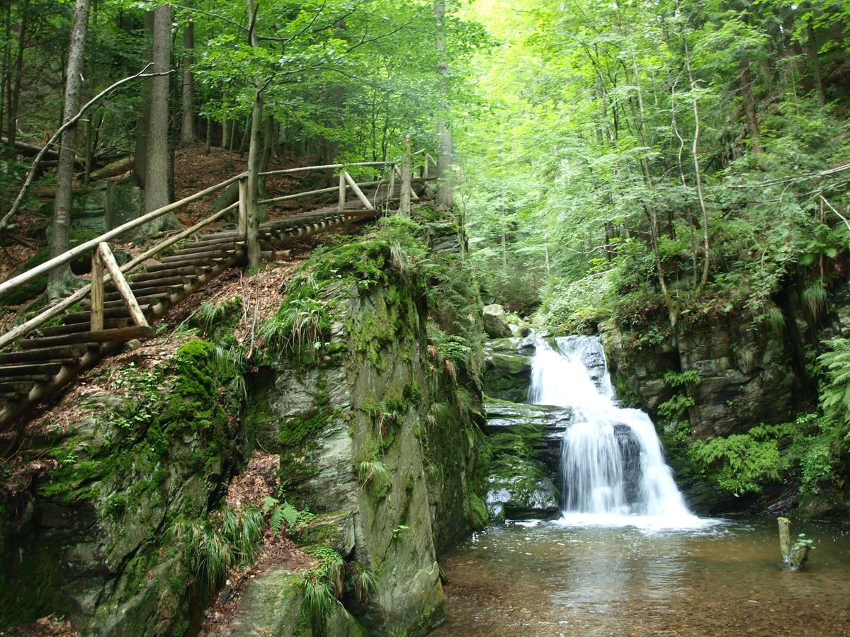 Romantické Rešovské vodopády v Nízkém Jeseníku.