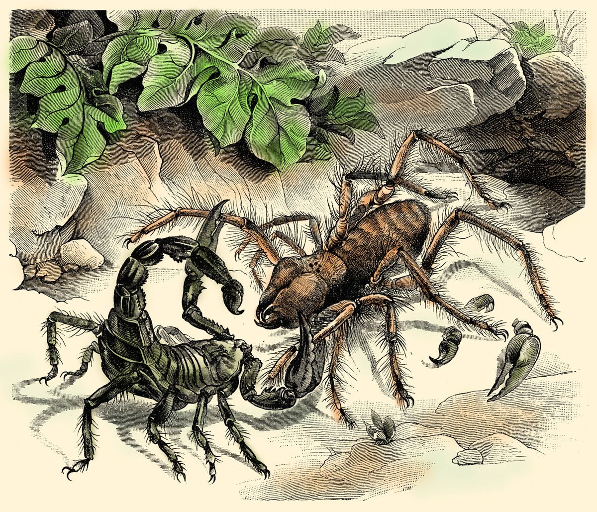 Solifuga (napravo) bojuje se štírem. Podle mnohých ale dokáže ublížit i velbloudům a lidem. Je to pravda?
