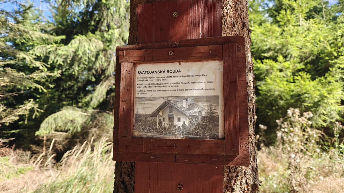 Asi jste tušili správně. Dnešní článek bude o bývalé boudě U sv. Jana, kterou najdete na stejně pojmenovaném rozcestí. Z kdysi dávno krásné boudy jsou dnes patrné sotva viditelné základy jedné z několika zdí, kterých si s nejvyšší pravděpodobností všimnete až tehdy, když vás zaujme svatý obrázek s vyobrazením svatého Jana Nepomuckého.