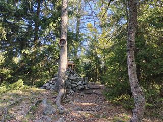 Až budete mít výhled v paměti, vraťte se zpátky ke kříži. Pokračujte po modré dál. V místech, kde se modré znační rozdvojuje, odbočte vlevo. Odtud je to už jen kousek k domovu patrona Brd Fabiána, k Fabiánovu loži.