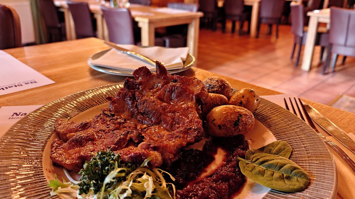 Jídlo jsem měla na stole během pár minut. Chuťově bylo lepší než dobré, bohužel přílohová zelenina nebyla ochucená, takže za moc nestála. Grilovaná krkovice poznala paličku na maso v měřítku větším než velkém. Ukrojit ji a následně rozkousat byl téměř nadlidský výkon, ale co se chuti týká, byla opravdu lepší než dobrá. Domácí limonáda byla výborná. Nechybělo v ní ovoce a měla tu správnou osvěžující chuť, jakou domácí limonáda mít má.