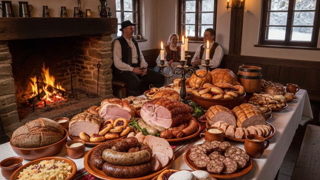 Masopustní pokrmy na Podbrdsku vycházely z jednoduché logiky venkovského života, kdy bylo potřeba využít maso ze zimní zabijačky. Sádlo a mouka byly základní suroviny, které byly po ruce. Sladké pečivo dodávalo energii během dlouhých průvodů. Hostina měla být poslední velkou oslavou před půstem. Masopust tak nebyl jen o maskách a průvodech. Byl to čas, kdy se celá vesnice sešla u jednoho stolu a jídlo bylo tím, co ji drželo pohromadě.