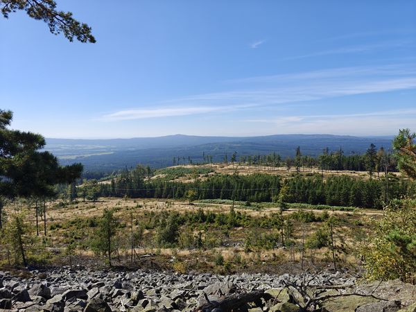 Samotný vrchol Hradiště je ukryt v hloubi lesa. Výhled z něj není skoro žádný, ale i přesto je radost jej navštívit. Vrchol zdobí nádherné kamenné moře se světlými kameny, které září do dálky lesního přítmí. V kamenném moři můžete vidět několik málo mladých stromů různých tvarů i právě kvetoucí vřes, na který je radost pohledět.