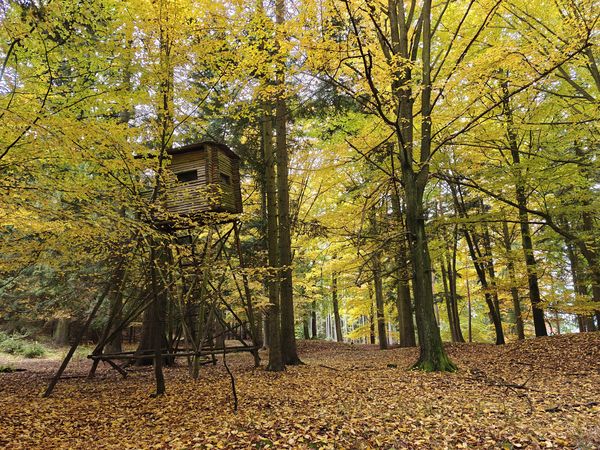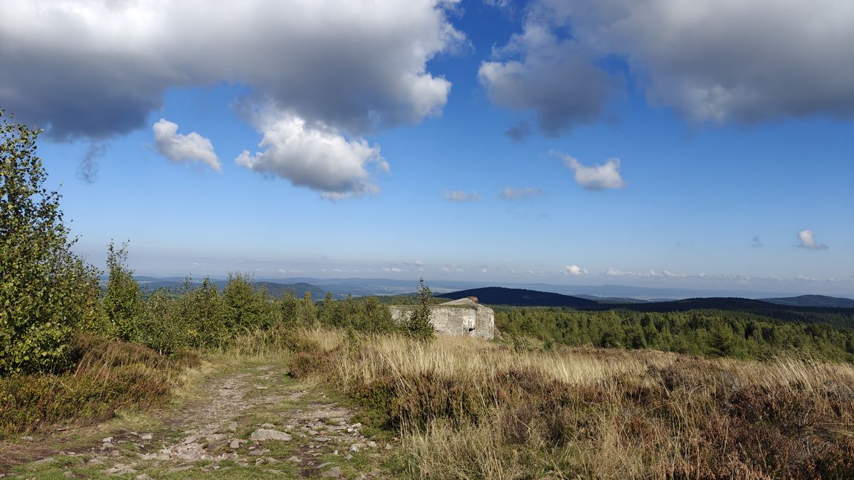 Až budete odpočatí, vyrazte po červené dál. Půjdete lesem z kopečka. Brzy překročíte asfaltovou silnici, u které najdete jedno ze zastavení na naučné stezce. Tady vystoupáte krátký kopeček, projdete kolem Jordánu, jednoho z nejvyšších brdských vrcholů, projdete kolem dalšího zastavení na naučné stezce, které budete mít po pravé ruce ve vřesovišti a rázem dojdete na rozcestí Dlouhý vrch - rozcestí, kde najdete další bunkr v ne moc dobré kondici. Odtud budete pokračovat doprava, po zelené dál. Brzdy dojdete do nádherného březového háje, kterým budete dlouho klesat a užívat si nádherných barev podzimu.