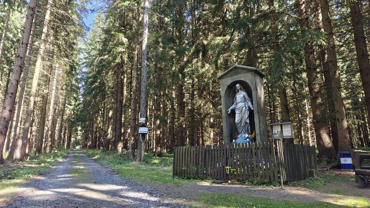 Jak asi tušíte, hrabě Pálffy nehodu přežil a dnes v hlubokých brdských lesích najdeme majestátní sochu, kterou místní znají jako sochu Panny Marie Březnické nebo Železnou Pannu Marii. Panna Marie je v životní velikosti, vyrobená z litiny. Socha se nachází v kamenném výklenku a je obklopena čtvercovou ohrádkou.