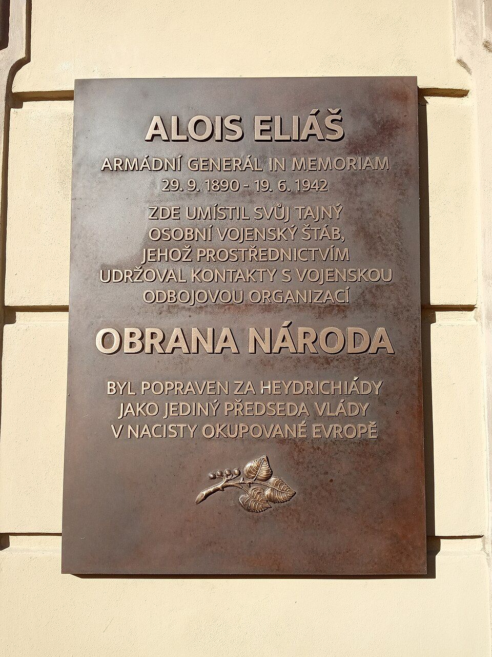 Praha - Malá Strana, Valdštejnská 10, pamětní deska Aloise Eliáše
