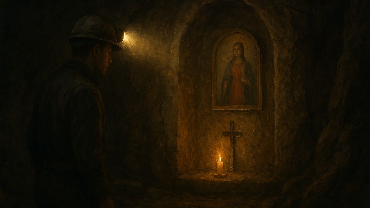 Kaplička je vytesaná přímo do stěny v jednom z podzemních systémů. Není nijak honosná, žádný oltář ze zlata, žádné vitráže, jen kříž z kovu, malý výklenek pro svíčku a vybledlý obraz svaté Barbory, ochránkyně všech, kdo se vydávají pod zem. Právě sem přicházeli horníci, aby se před směnou pomodlili. Věděli, že podzemí neodpouští chyby a věřili, že Barbora jejich modlitby vyslyší.